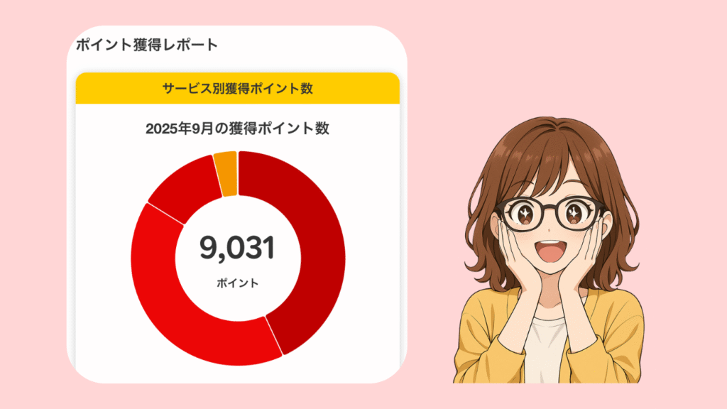 9月の楽天市場の獲得ポイント数は、9,031ポイントでした。