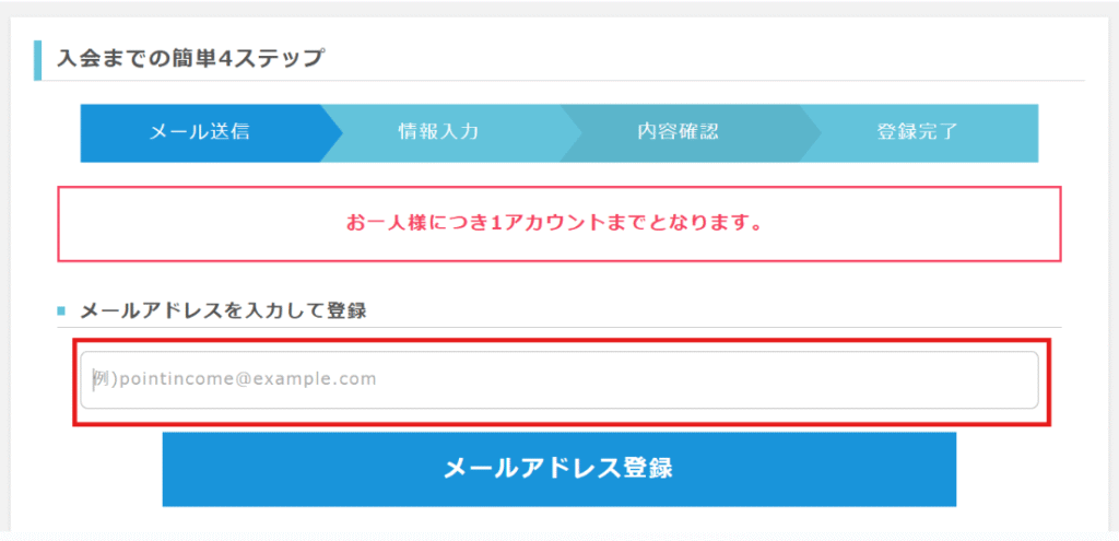 メールアドレスを入力後、”メールアドレス登録”をクリック。