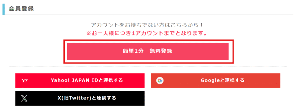 公式サイト上部にある”会員登録はこちら”をクリック。
