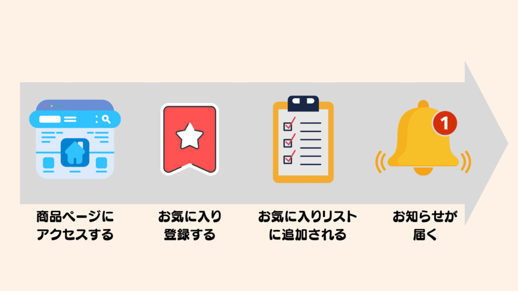 売り切れ商品では、「再入荷のお知らせを受け取る」ボタンが表示されることがあります。ここでは、一般的な登録・確認の流れをまとめます(表示は商品や店舗により異なる場合があります)。