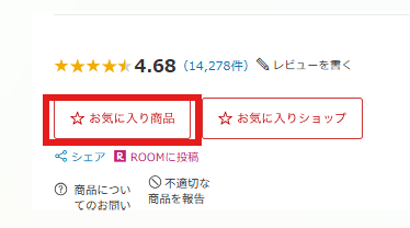 「お気に入り」は、楽天市場の各商品ページやショップページでブックマークできる機能です。