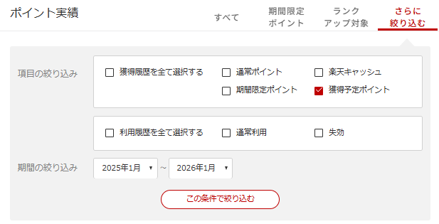 利用可能ポイントになる日は、楽天PointClubの「獲得予定ポイント」にて確認できます。